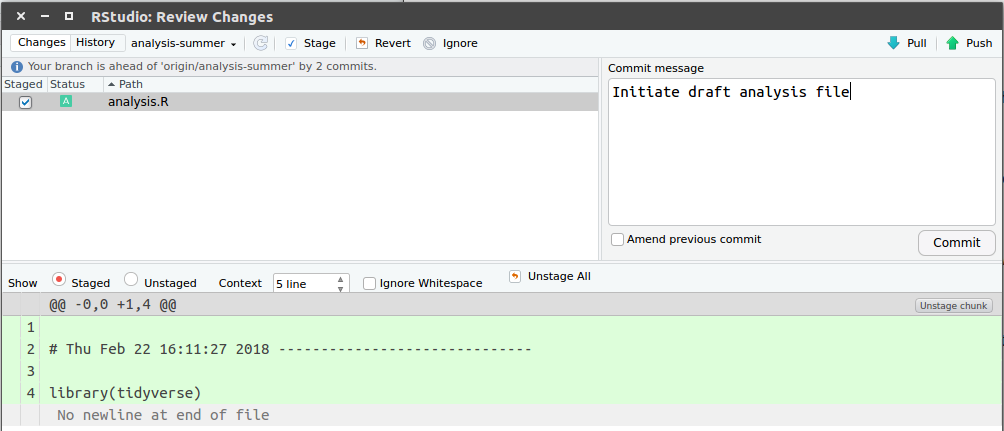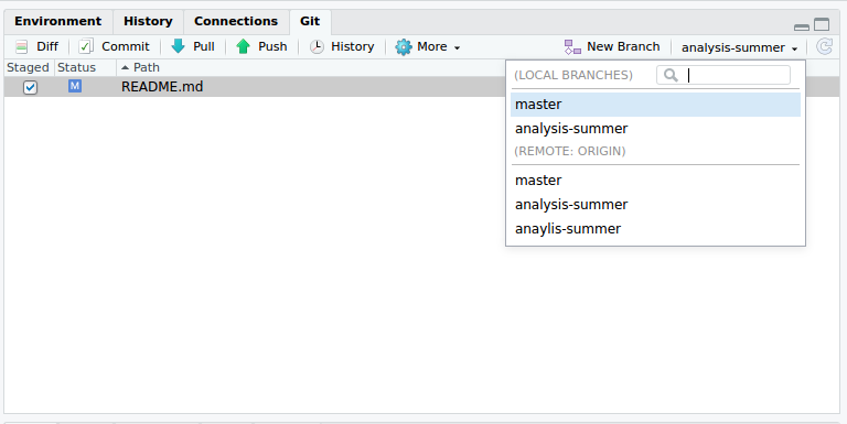 git branch -d analysis-script