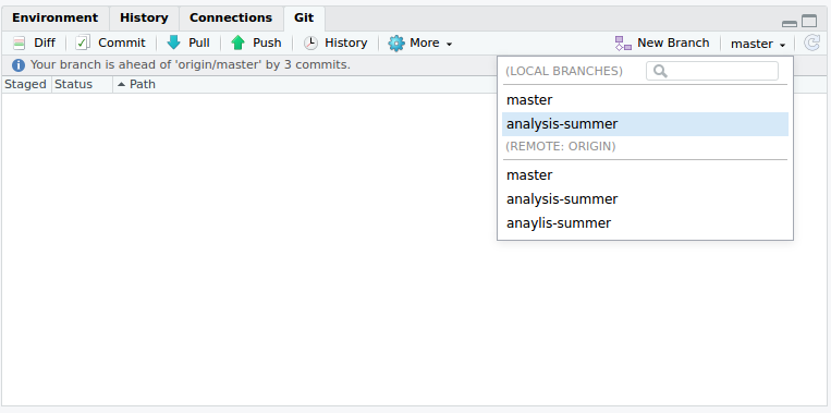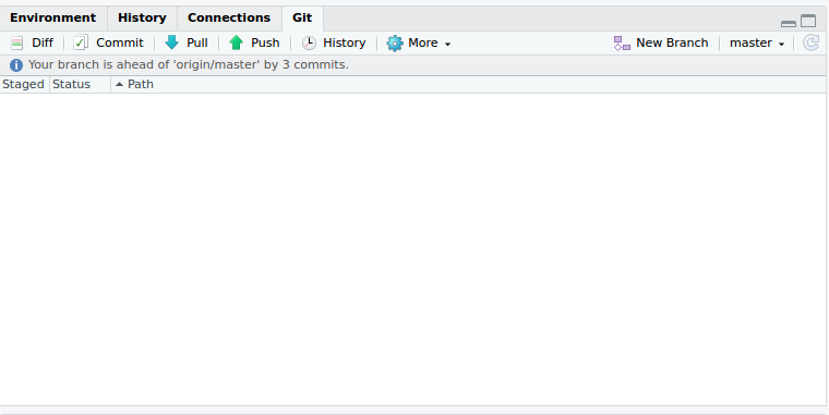 Update the master branch to make sure it is aligned with the remote master: Click Pull: