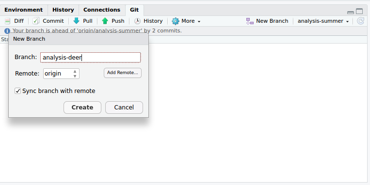 Create a new branch: click on New branch and fill in a branch name:
