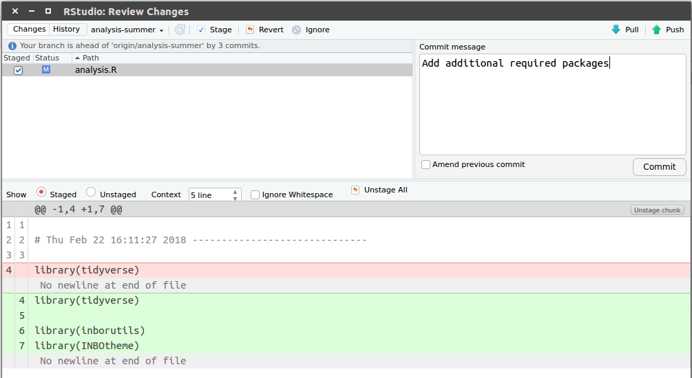 Stage the adaptations with checkbox and click Commit